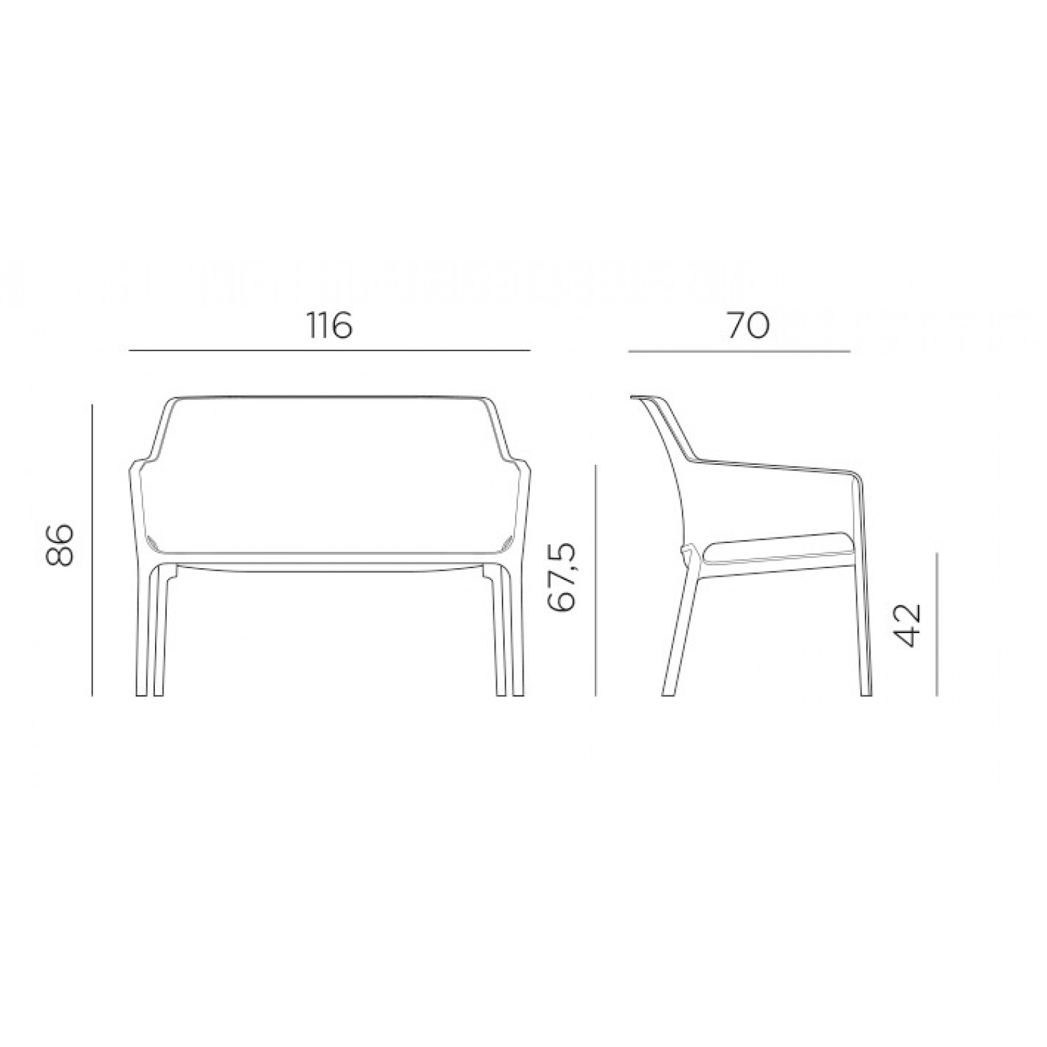 • ( M x Π x Y ) cm: 116 x 70 x 86